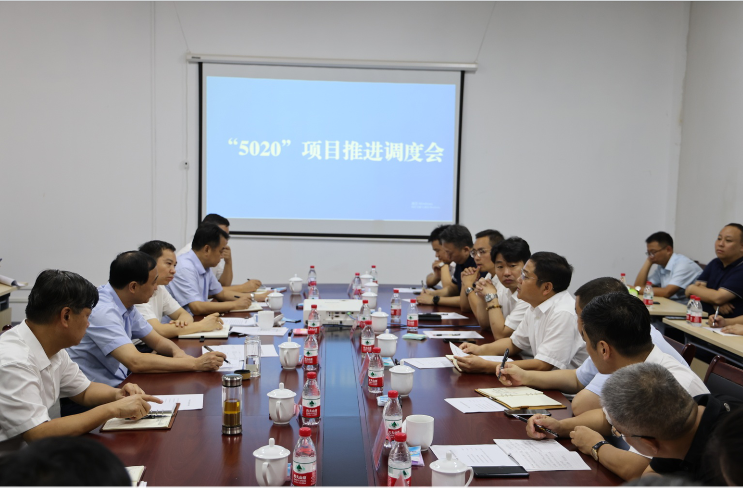 劉鋒書記一行首先深入富祥科技項目建設現(xiàn)場,詢情況、看設備,現(xiàn)場實地調研富祥科技項目建設情況。隨后在會議室召開了“5020”項目推進會,會上富祥藥業(yè)董事長包建華、副總經理戴貞亮分別匯報了富祥科技與凌富醫(yī)藥項目建設情況和問題,劉鋒書記仔細聽取匯報,不時交流詢問,對項目建設過程中遇到的具體問題,逐項梳理,現(xiàn)場辦公,協(xié)調解決。