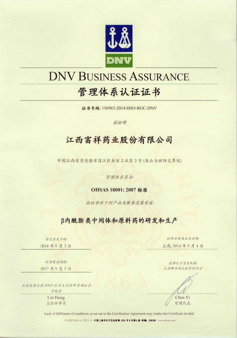 2014年9月,公司順利通過(guò)DNV(挪威船級(jí)社)ISO 14001環(huán)境管理體系驗(yàn)證和OHSAS 18001職業(yè)健康安全管理體系驗(yàn)證。